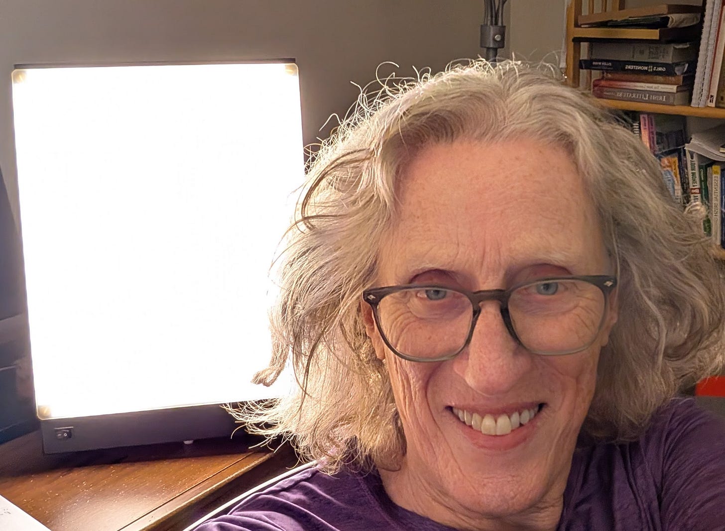 I turn to my computer, and I notice a Post-It note at the bottom of the monitor. It reads: Go to the Light. I had put it there during the dark days when book banners came for my beloved library. For three years, it reminded me not to give in and become overwhelmed, but to fight back and believe that one day the library would live in the light again. Happily, the community spoke loud and clear in the last election and voted out the book banners, reclaiming the library for everyone in the community.